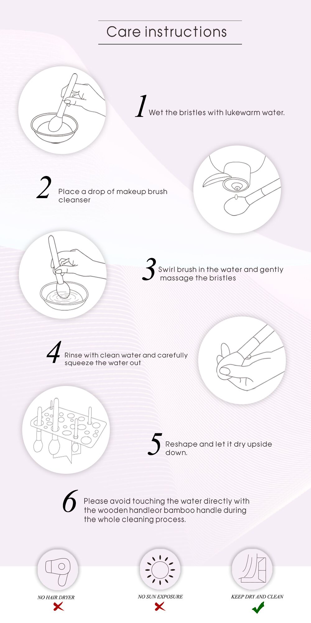 3. Do not put brush handle in the water to avoid brush broken .