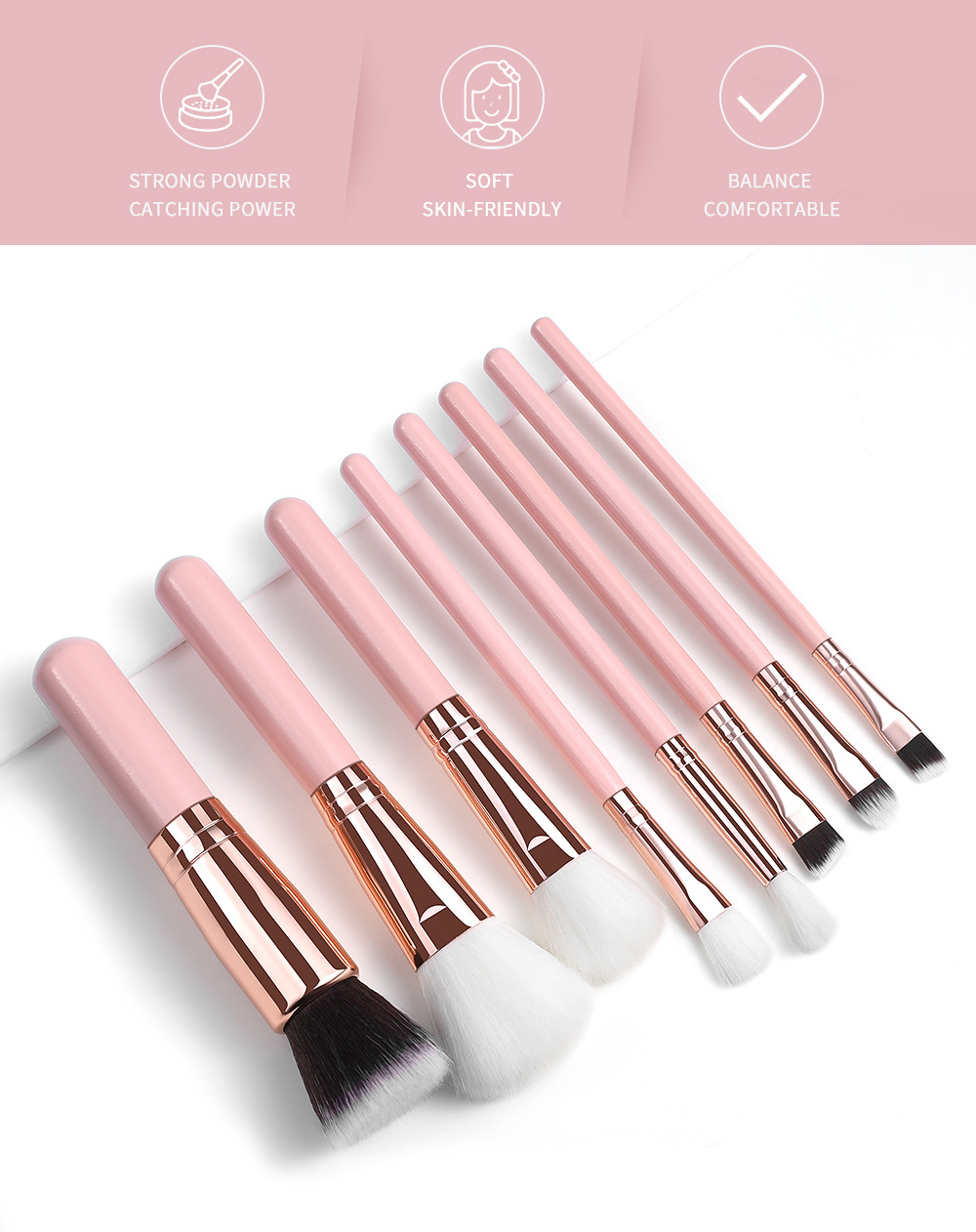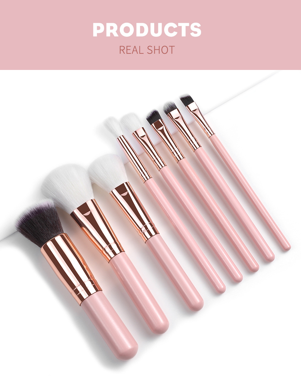 | 6) Application | Powder brush, blush brush, foundation brush, brow brush, eyeshadow brush | ||